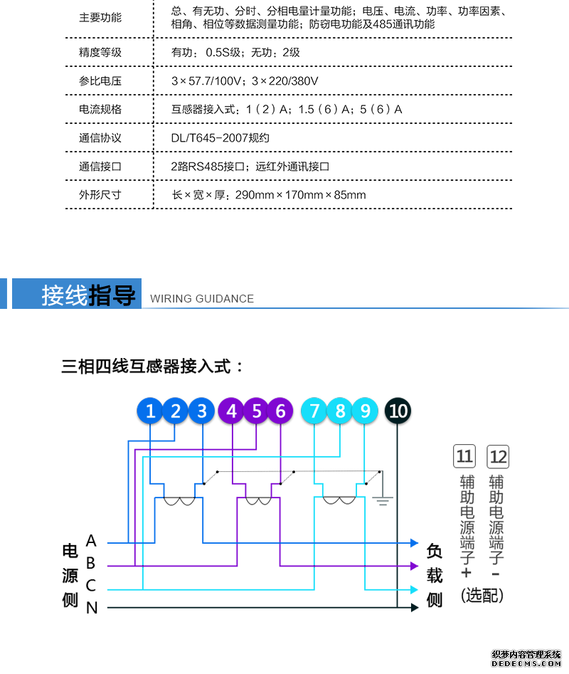 接線制式:三相四線制