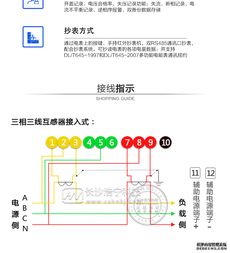 主要功能:有功,功率因素,有功功率,無功功能,四象限無功,電壓,電流,事件報警