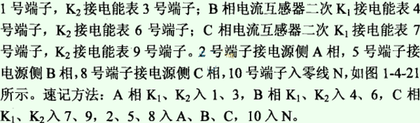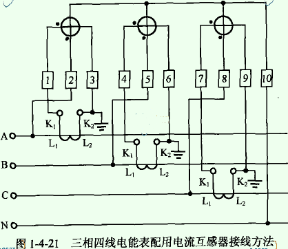 三相四線電能表需配用三只電流互感器,A、B、C三相各用—只。將—只三相四線5A電能表,拆除1與2、4與5、7與8號(hào)接線端子連接片。A相電流互感器一次L1接電源A相,L2接A相負(fù)載;B相電流互感器一次L1接電源B相,L2按B相負(fù)載;c相電流互感器一次L1接電源c相,L2接c相負(fù)載。A 相電流互感器二次K1接電能表