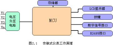 本儀表系列采用了高精度的采樣計量,高速的MCU進行數(shù)據(jù)處理,豐富的液晶顯示屏,非易失存儲器。具體結(jié)構(gòu)如圖2.1所示。