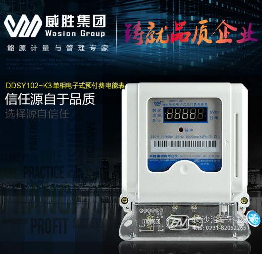 威勝電表DDSY102-K3單相電子式預(yù)付費(fèi)電能表,又叫做定量電能表、IC卡電度表,除了具有普通電能表的計(jì)量功能外,特別的是用戶先買電,買電后才能用電,若用完電后用戶不繼續(xù)買電,則自動切斷電源停止供電。用于計(jì)量額定頻率為50Hz 的交流單相有功電能,實(shí)現(xiàn)先付費(fèi)后用電的管理功能。采用先進(jìn)的微電子技術(shù)進(jìn)行數(shù)據(jù)采集、處理及保存,采用射頻卡傳遞數(shù)據(jù)。其性能指標(biāo)符合GB/T17215-2002 和GB/T18460.3-2001 標(biāo)準(zhǔn)。具有體積小、安全性高、可靠性高、防竊電等特點(diǎn)。